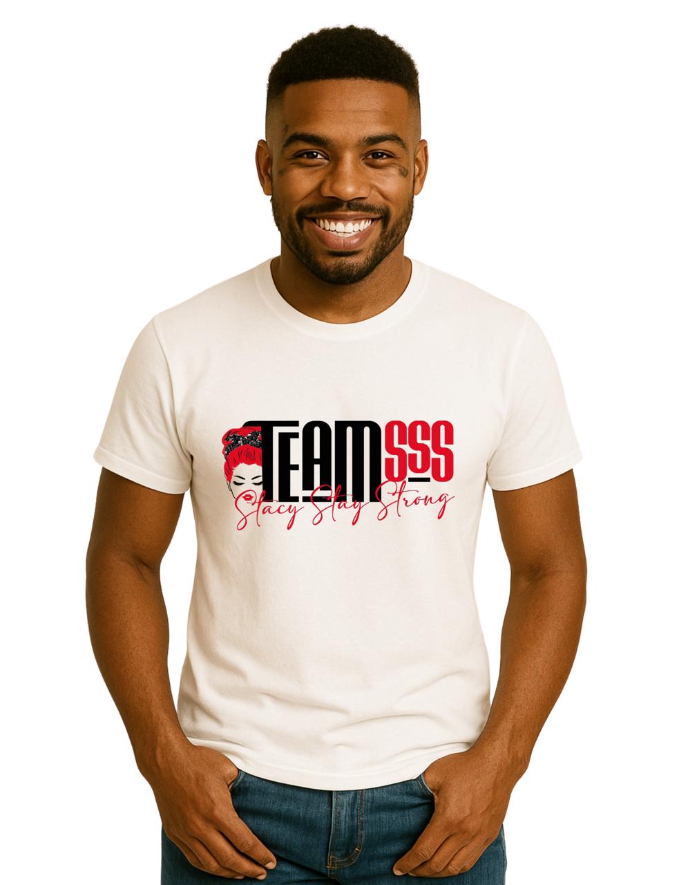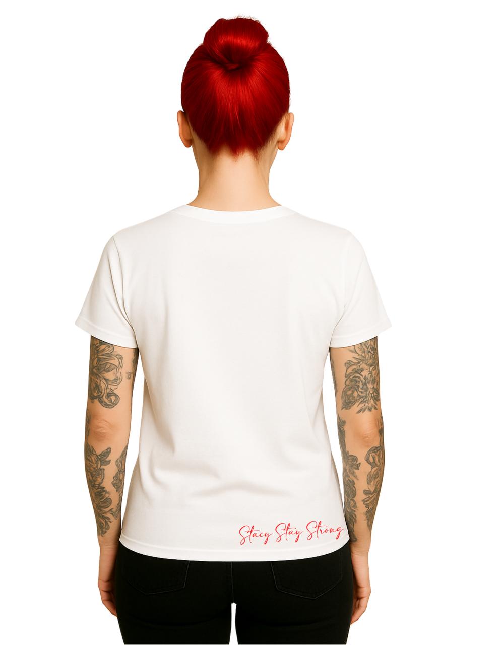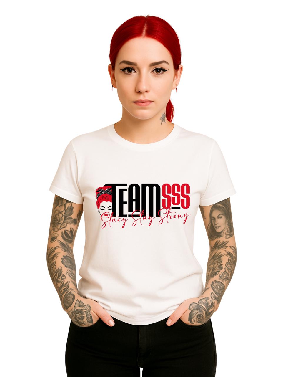 Porte haut les couleurs de la team avec ce T-shirt blanc à l’image de Stacy et du logo officiel.